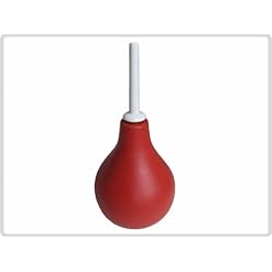 Now forgetting about enemas for now and coming back onto the simple household douche, the most common douche you'll see out there look a bit like this so generally it's a bulb which actually contains the water and it has a small slim nozzle for easy insertion.