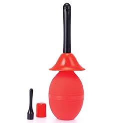 Now forgetting about enemas for now and coming back onto the simple household douche, the most common douche you'll see out there look a bit like this so generally it's a bulb which actually contains the water and it has a small slim nozzle for easy insertion.
